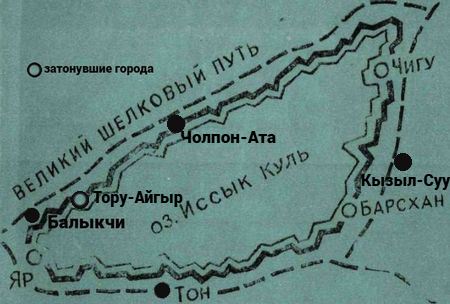 Город Яр раполагался на западном берегу Иссык-Куля, вероятно в 10км южнее города Балыкчи у мыса Ракушечный, где на берегу я нашел фрагменты средневековых кирпичей и керамики, в том числе керамический осколок с бирюзовой глазурью, предположительно 14 века. Это селение упоминается в письменных источниках один раз - в географическом очерке 1050 года "Зайн ал-ахбар" (Краса повествований) Абу Гардизи. Согласно Гардизи Яр мог выставить вооруженный контингент в 3000 человек. Похоже, что речь шла о районе всего западного побережья. Исходя из этой цифры можно предположить, что население западного прибрежного района было около 25 000, а население самого Яра было приблизительно - 7000 человек. В окрестностях города располагались шатры предводителей тюрков-джикилей. Предводитель имел титул Тегун (царский сын). Иссык-кульскую долину в те времена населяло смешанное население - тюрки (с 8 века?), усуни (со 2 века до н.э.), говорившие на усуньском языке индо-европейской семьи и потомки выходцев из Ирана и Согда (современный Узбекистан), пришедших в эти места около 8 века.