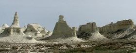 Изоляция Северного Каспия от мирового океана привела в ранней перми к мощному соленакоплению. Интенсивное испарение приповерхностной воды позволяло солям кристаллизоваться, что приводило к увеличению солености воды и осаждению соли. Из-за тектонических нарушений равновесия эта соль сегодня всплывает на поверхность в виде соляных куполов, прорывая перекрывающие ее более тяжелые слои (песчаники, конгломераты и др.) Соляные купола поднимаются со средней скоростью 1-3см в год и за миллионы лет они прошли путь в километры. Купола похожи на перевернутые капли, причем они часто оторваны от основного слоя соли и всплывают сами по себе. Соляные «капли» выходя на дневную поверхность размываются, формируя многочисленные солончаки равнины.